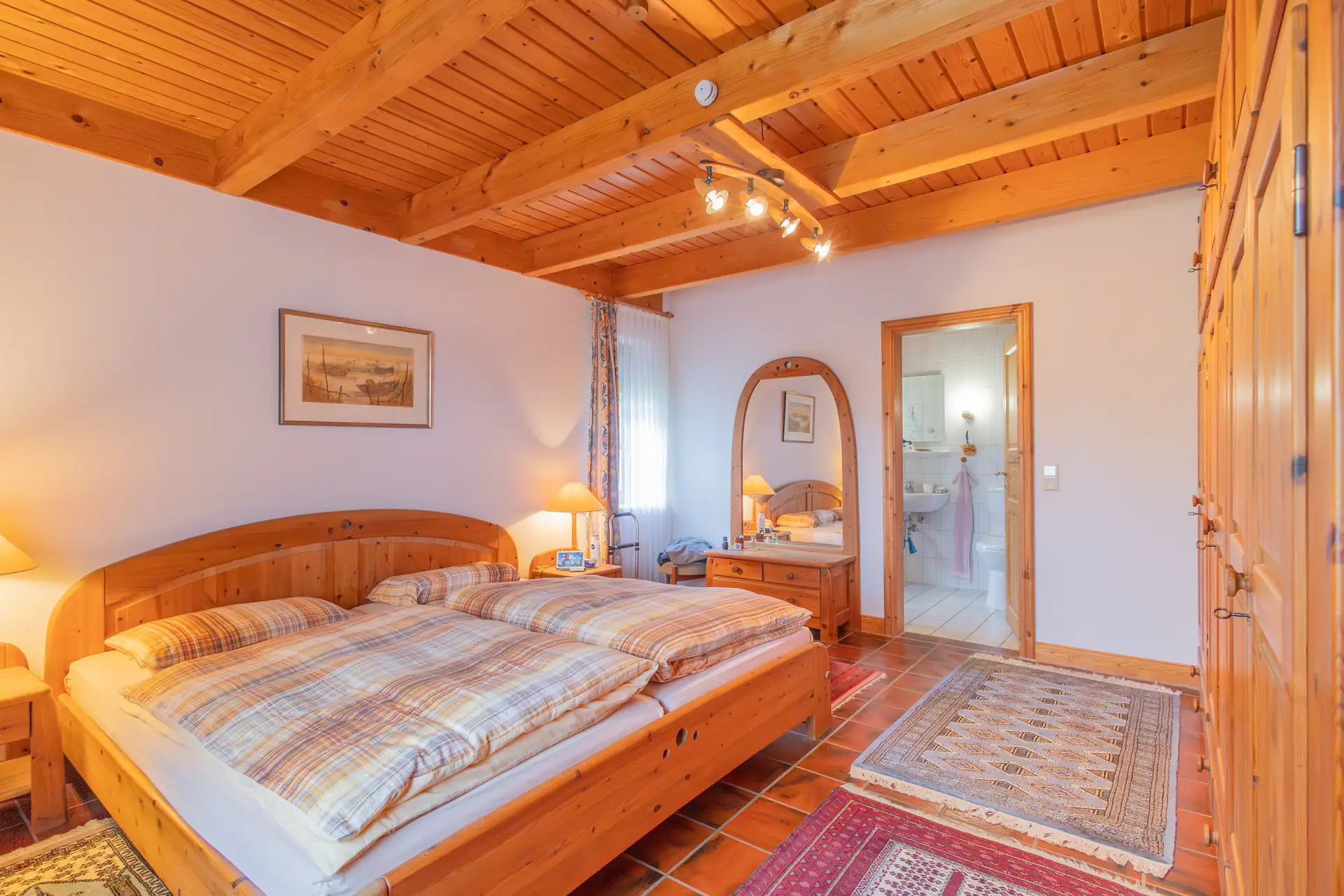 Ebenfalls im Erdgeschoss: das großzügige Elternschlafzimmer mit eigenem Duschbad en suite. Dies ist ein privater Rückzugsort, der Ruhe und Komfort vereint.