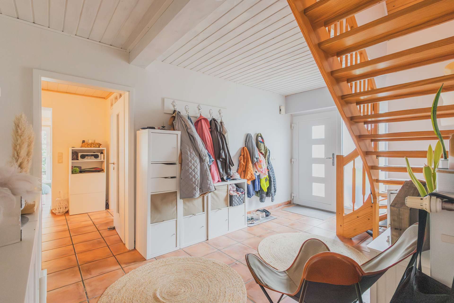 Der helle, L-förmig geschnittene Flur mit ca. 10 m² bildet den Auftakt zu einem durchdachten Grundriss. Von hier aus erreichen Sie nicht nur das Obergeschoss, sondern auch sämtliche Räume des Erdgeschosses.